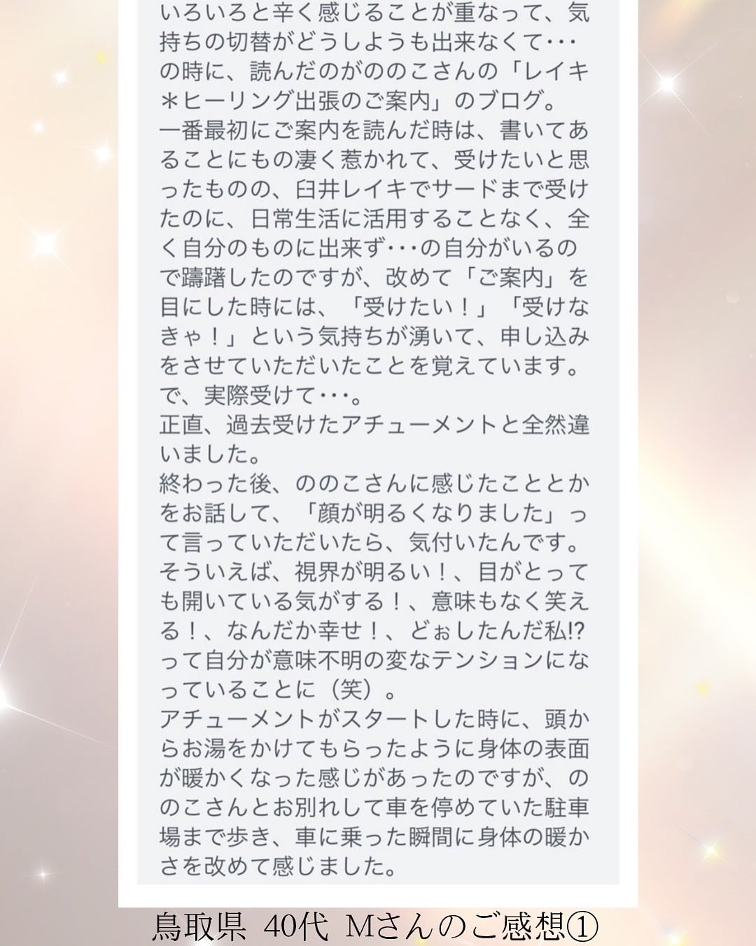 ー ヒーリング後は、宇宙の愛と光のエネルギーを受け取った後なので、言葉にならない安心感から眠気に誘われる方が多いです。